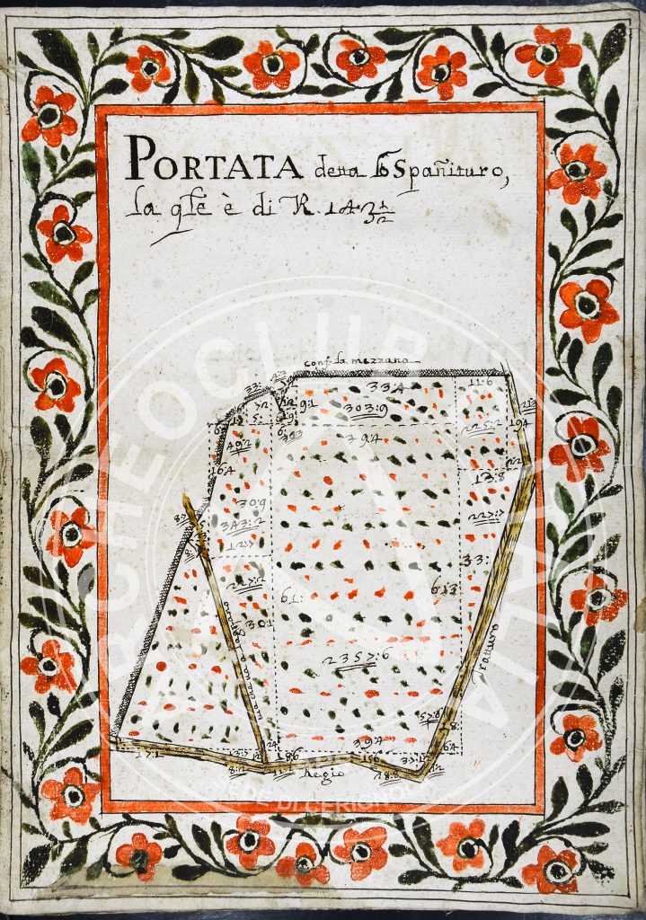 Nel GRANDE ARCHIVIO di STATO di NAPOLI, ben cinque artistiche PLANIMETRIE, acquerellate con il caratteristico gusto barocco del tempo e realizzate nel 1754, sono state dallo scrivente rintracciate il 26 luglio 2013 nell’ARCHIVIO DI STATO DI NAPOLI; le stesse sono state, dietro mia espressa richiesta, riprodotte fotograficamente (12), venendo ivi pubblicate per la prima volta. Le PLANIMETRIE si riferiscono alla “PORTATA di LAGNANO” e ai limitrofi “FEUDI” di “LAGNANELLO” e del “Duca d’Ascoli”.